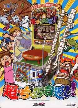 Cho Chabudai Gaeshi (roughly translates to Super Dinner Table Flipping) is an arcade game developed and published by Taito. In the game, the player must pound their hands and flip the game's plastic table peripheral in one of four scenarios to score points.