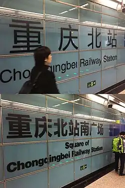 - ^ 站名不再绕 3号线重庆北站将更名重庆北站南广场. Xinhuanet (in Chinese). 2016-03-23. Archived from the original on March 23, 2016. Retrieved 2018-01-05.