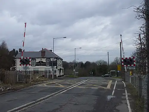![]() The level crossing to the right of the site of the station, in 2010 | |||||