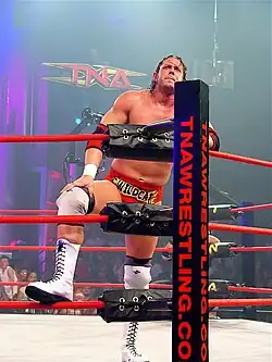 On June 1, 2002, Harris was given a tryout match against his long-time independent circuit rival James Storm with Total Nonstop Action Wrestling (TNA) by Bert Prentice.[1] Both were subsequently signed to short-term contracts. He wrestled in the Gauntlet for the Gold match on the first TNA pay-per-view and was placed in a tag team with Storm on the second pay-per-view by Bob Ryder, the creative force behind the team. Storm came up with the name "America's Most Wanted" (AMW) for the team. They obtained their first success on September 18, 2002, by surviving a tag team Gauntlet for the Gold and defeating Ron Harris and Brian Lee to obtain the NWA World Tag Team Championship.[1]