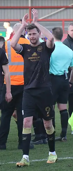 ![]() Porter applauds Crewe Alexandra supporters after scoring the winner at Cheltenham Town on 26 February 2022 | |||