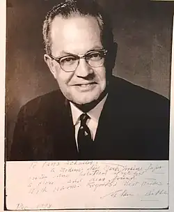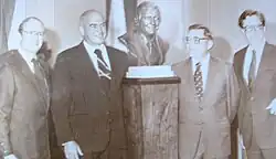 Two years after his death, a group of friends and associates wanted to create a permanent memoriam for Schaller.[7] They called their effort “The Campaign to Bust Schaller”, and commissioned sculptor Kristin Lothrop of Manchester. Mass. to create a bronze bust. The bust was unveiled in the old senate chambers of the Nevada State Capitol Building on May 19, 1986.[8] In attendance were the current governor, Richard Bryan, and former governors Robert List, Grant Sawyer and Mike O'Callaghan. Prior to the placement of the Schaller bust, there was only one bronze bust in the Capitol of Abraham Lincoln.[5]