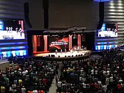 On May 12, 2013, CCF held its first Sunday worship service at the new CCF Center in Frontera Verde (now Ortigas East) in Pasig, an 11-storey building with a seating capacity of 10,000 people.[1] The CCF Center was also the venue for the Manila leg of evangelist Nick Vujicic's "Unstoppable" tour that same month on May 18, 2013.[2] In the same year, CCF had 38 satellites in the Philippines and eight abroad, with 46 congregations consisting of 40,000 members.[1]