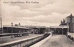 Opened originally as Christ's Hospital (West Horsham),[1] the station was until the mid-1960s an important junction with, in addition to the existing link to Arundel via Pulborough, connections to Guildford via Cranleigh and Brighton via Shoreham-by-Sea.
