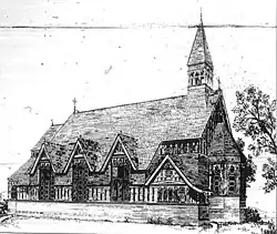 - Built 1878, original wood structure with wood trusses still visible inside, enlarged and encased in stone in 1925, stained glass windows added