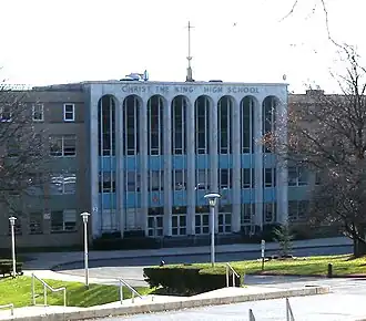 Originally built and operated by the Roman Catholic Diocese of Brooklyn as a diocesan high school, Christ the King High School began with its first freshman class starting September 1962 with its teachers at Mater Christi High School in Astoria, Queens. The first classes at the unfinished Middle Village location were held on May 6, 1963 and the school building was dedicated in April 1964.