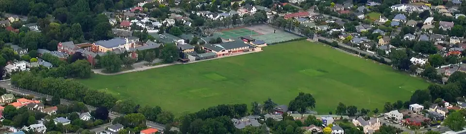 Established in 1881, the prime purpose of Christchurch Boys' High School was to prepare students for enrolment into the then newly formed Canterbury College, now known as the University of Canterbury.[3] Consequently, it was initially co-located with the College in downtown Christchurch, at the site of the modern-day Christchurch Arts Centre. As the university and school expanded, the school moved to its present location on Straven Road in 1926.[4] The school's present site was originally a farm owned by Canterbury's pioneer settlers, the Deans, and several buildings from the Deans' farm still stand on the grounds. The school's main building is registered by Heritage New Zealand as a Category I heritage building, with registration number 3658.[5]