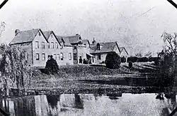 The Provincial Government voted £1,500 to building the hospital in Christchurch in 1861. The initial building was a two-storied "barn-like structure" on Hagley Park at Riccarton Avenue. It opened on 1 June 1862, after "Hands off Hagley" protests by citizens.[7] The last of the original buildings were demolished in 1917.[8]
