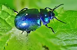 - ^ a b c d e "Blue mint beetle". rhs.org.uk. Retrieved 20 April 2017.
