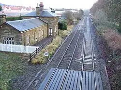 Following serious flooding of the railway in 2000, the signal box at Church Stretton, to the north of the Sandford Avenue bridge, was "switched out" and closed in 2004. The set of points at the station lay defunct before being removed in 2009, together with the box (built 1872) and all signals.[1] Control of the line has been transferred to Marsh Brook signal box to the south.[8]