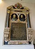 There is a monumental brass to Richard Golden (died 1446), priest at Willian 1416–1466,[4] while the walls are adorned with good quality monuments, those in the chancel being to Edward and Joan Lacon (died 1625 and 1624), John Chapman (died 1624) and Thomas Wilson (died 1656).[6] The latter is a fine and rare example. These monuments were cleaned and some were repainted in 1974. The newer of the two lecterns was given in memory of Samuel Valentine, who died in 1974; the older one was given in 1870 by Thomas Legh Claughton, the Bishop of Rochester in whose diocese Willian then lay.[4] The original 15th-century rood screen has been removed.[3][7] Above the tower arch are the Royal Arms which were probably placed there during the restoration of 1870. At the base of the tower the Ellacombe Chime bell-ringing apparatus on the wall enables one person to ring all six bells. The oldest bell in its original state is dated 1662. The organ was made by J. W. Walker & Sons Ltd in 1864, and was refurbished in 1986. The Victorian baptismal font is believed to be the fourth in the church. Its predecessor was taken to the Rectory where it was used as a plant container.[4]