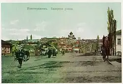 On behalf of the Emperor Alexander III the permission to build a new church in Novocherkassk was given. Documents on the construction of the church have not survived. Judging from the old photos, the church was a one-storey, had five domes and was built of white stone. The architect was S.I. Boldyrev.[1] The iconostasis of the church was painted by the artist E.G. Cherepakhin, who also designed Novocherkassk Ascension Cathedral. In 1903, the church was built and consecrated.