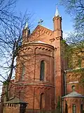 The St John the Baptist church buildings are the main cultural objects of Plungė Old Town. The church was built in the Romanesque revival style, with a Latin cross layout and two towers. The predecessor of the present-day church was the wooden 1797 St John the Baptist church, which did not survive to present times. The building of the new church began in 1899.