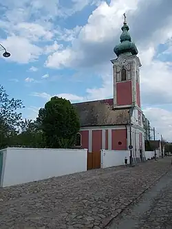 The Church of St. John the Baptist (Serbian Cyrillic: Црква светог Јована Крститеља, Hungarian: Keresztelő Szent János-templom) in Székesfehérvár, Fejér County, dedicated to the Nativity of St. John the Baptist, was constructed in 1771.[1] The interior showcase elaborate decorations, with a Rococo-style iconostasis unique in Hungary.[2] The paintings of Katarina Ivanović, the first female Serbian artist, are permanently exhibited, showcasing scenes from the life of the Serbian community in Székesfehérvár.[2] The church is built at the site of an older wooden church of St. Nicolas from 1733.[3] The oldest icon, the Vladimir Mother of God, was made in the 15th century and might have been brought by the first Serbian settlers at the beginning of the 17th century.[3]