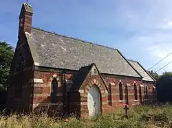 The church is simple and small, comprising a chancel, nave and bellcote.[1] It is constructed of red and yellow brick and incorporates some material from the earlier church.[1] These included the original font, returned from nearby Skeffling.[7] A tablet, commemorating two men from the village who were killed in the First World War, was removed when the church was decommissioned and is now located at All Saints', Easington.[8] Graves of two unknown merchant seamen also killed in the war are located in the graveyard.[9]