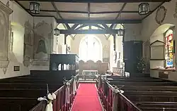 Among the most striking features are the biblical texts on the walls which date from the 17th Century. The church also boasts a "two decker pulpit", original box pews, as well as rare canopied pews. The West Gallery still survives, with a staircase leading to it and at the north side, space for musicians.