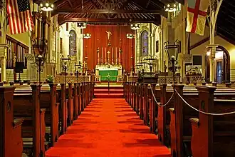Church of the Ascension was inscribed to the National Register of Historic Places in 1986. Its more recent history is included in the National Register of Historic Places Inventory Nomination Form, which was initiated by members of the parish on the occasion of the church's centennial in 1984: “The present lot was purchased in January 1886 and the wooden church was moved in the spring of that year. At that time, the entrance was on Kentucky Avenue. The second rector, John H. Townsend assumed the pastorate in 1891. A dynamic priest, he immediately planned a new church building. The chimes were given by the Hemsley family, and Miss Josephine Fletcher organized and directed the boys’ choir which took part in the first service, held Whitsunday May 13, 1894. In the fall of 1896, a pipe organ was installed and Mr. Alber Dietz came from New York City as the first full-time organist and choir master. In 1900 this office was filled by Mr. Alger E. Weeden, who held his post for forty years and left his imprint on both the parish and the whole community. The same year also saw the construction of the parish hall buildings as well as the beginnings of St. Augustine's and All Saints’ Chapels, starting the realization of Father Townsend's dream of Ascension as mother church. Soon after, Church of the Good Shepherd was built in the inlet section. ... In this, our Centennial Year, we look forward to a second century of service as a missionary parish for Christ and His Church. The parish must stand as a witness to the Catholic faith of the Episcopal Church in downtown Atlantic City. In this time of citywide transition, the Church of the Ascension offers an enduring message: ‘with God’s help, we shall be of even greater service to the community: to His great glory. ... As of this writing (November 1983) there remain two Episcopal Churches in the City of Atlantic City—the Church of the Ascension and St. Augustine’s. Where there were once five Episcopal Churches in Atlantic City there are now just two. The Church of the Ascension being the “mother church” must survive and become a landmark in the ever changing facade of Atlantic City.”[9]