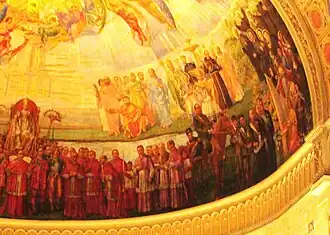A particularly well-known fresco depicts Benito Mussolini on a horse; painted before World War II, it commemorates his signing of the Lateran Accords.