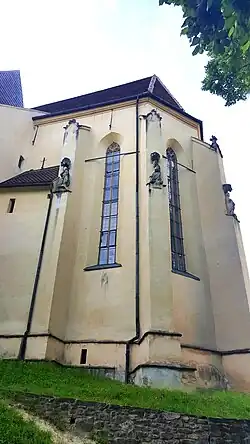 The Church on the Hill (Romanian: Biserica din Deal, German: Bergkirche) is an architecturally significant church located in Sighişoara, Mureș County in Romania. This church is the most important monument of religious architecture in Sighisoara and is one of the great churches of Transylvania, being the third largest. Located at an altitude of 429 meters, on the Hilltop School, the church dominates by its massiveness the entire city and it is visible from a great distance almost from all directions.[1] Most researchers believe that a number of architectural details such as slightly misaligned position of the bell-tower and choir demonstrate an evolution in stages, over several centuries, in the construction of this church.[2]