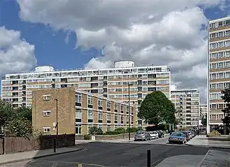 Comprising 1,600 homes in 32 blocks, the estate is notable as the only housing project completed under the ambitious Abercrombie Plan to redevelop the capital on more "efficient" lines. Tall slabs of between nine and eleven storeys are enclosed by seven storey blocks and interspersed with maisonettes and terraces. A pioneering example of mixed development, it acted as a model for many subsequent public housing projects, although few matched its size and even fewer achieved its architectural distinction or social diversity.