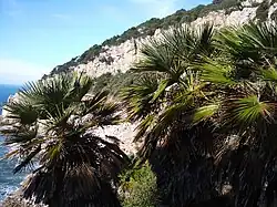 From a naturalistic point of view, it can be divided into two different sectors. The northern slopes of the promontory have a more humid climate and are covered by a thick shrub of holly oak in the upper sector, which, at the lower heights, is associated with manna arsh, Ostrya carpinifolia, downy and Italian oak. The understory includes erica, broom and strawberry tree, while where the mount descends to the plain is a 25 ha cork oak wood. The southern slopes have a milder climate and are characterized by Mediterranean rock vegetation (holm oak, Phoenicean juniper, euphorbia tree, myrtus, Pistacia lentiscus, rosemary and erica, while amongst the lower plants are the rock samphire, Helichrysum and Centaurea.