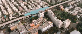 City Center (also known as LIC City Center for sponsorship reasons) is an elevated metro station on the east-west corridor of the Green Line of Kolkata Metro that serves the City Center shopping mall area in Salt Lake City, Kolkata, West Bengal, India. This metro station is located near Labony Estate, Salt Lake.