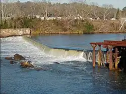 City Mills Dam was a dam on the Chattahoochee River, between Downtown Columbus, Georgia, and Phenix City, Alabama. The dam was built in 1907 to power the City Mills grist mill. Previously, a wooden dam dating to 1828 had existed at the site. The dam impounded a 1.3-mile (2.1 km) run of the river reservoir of approximately 110 acres (0.45 km2).