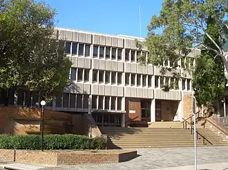 The 1912 Council Chambers had had many alterations, including a first floor addition completed to a design by architects Moore & Dyer in 1937 which had required the council to hold its meetings at the St George County Council headquarters in Montgomery Street while construction occurred.[12][13] The newly remodelled chambers were officially reopened by the Minister for Local Government, Eric Spooner, on 28 April 1937.[14] In 1970 it was decided to replace the old council chambers, which were demolished to make way for the Kogarah Civic Centre, opened by Governor Sir Roden Cutler in 1973.
