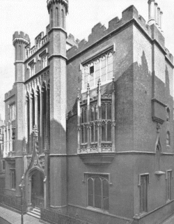 The school eventually outgrew its original site. While some public schools moved away from Greater London in the late 19th century, the management and committee of City of London jointly decided to stay in the capital, as it was deemed a stimulating environment for education. A City of London School Act 1879 (c.63) empowered the school to move to a new site in the City of London at Blackfriars on the Victoria Embankment overlooking the Thames. The school moved in 1883 and the new building was opened by the Prince of Wales, (the future King Edward VII).[9] In 1887 the Divisional Court and the Court of Appeal determined that the City of London School was a public school.[10]