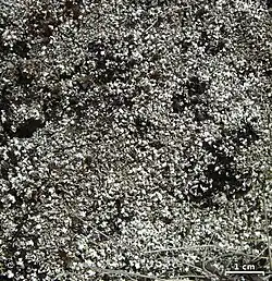 Two distinct chemical forms are commonly found in North America: one contains both fumarprotocetraric acid and atranorin (giving a red reaction with PD solution and yellow with K solution on the white lower surface of the squamules), whilst the other contains only atranorin (showing no reaction or pale yellow with PD, and yellow with K).[5]