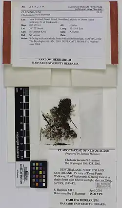- ^ "Cladonia incerta S. Hammer". Catalogue of Life. Species 2000: Leiden, the Netherlands. Retrieved 13 July 2024.