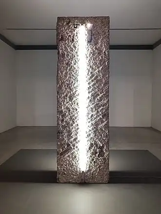 Menéres worked in stone, plastic, metal, neon and embroidery, among other materials. Her subjects ranged from feminist and erotic art in the 1960s and 1970s, to religious art in the later years of her life. In 1977 she made Woman-Earth-Mother, a powerfully symbolic work which is now unanimously considered as a fundamental of feminism in Portugal, combining the political consciousness of gender with the vocabulary of international pop art, in an explicit representation of the sex of a woman. In the 1980s she became known as the "light sculptor" for the use of light in her work. Her last works included sculptures for the Sanctuary of Fátima and a statue of Pope John Paul II.[1][3]