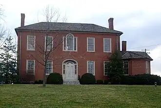 Construction began in 1813 for James Clark who was 13th governor of Kentucky and was finished in 1814. It was built specifically for James and his wife, who named it after her father. Clark Mansion is historically significant for its Federal architecture. It is a single building on less than 1-acre (4,000 m2) of land. It is a two-story brick painted red house with a wide front porch and Ionic columns. It also has a wide entrance and the 2nd story has a Palladian window.[2]