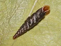 It selectively grazes on calcareous-rock lichens, particularly the crustose lichen species Verrucaria nigrescens.[3]