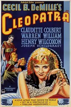 Cleopatra is a 1934 American epic film directed by Cecil B. DeMille and distributed by Paramount Pictures. A retelling of the story of Cleopatra VII of Egypt, the screenplay was written by Waldemar Young and Vincent Lawrence and was based on Bartlett Cormack's adaptation of historical material.[2] Claudette Colbert stars as Cleopatra, Warren William as Julius Caesar, and Henry Wilcoxon as Mark Antony.