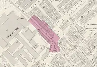 In November 1910, the MR submitted a private bill to parliament that included plans to construct a new station at Mount Pleasant.[1] The station would have been 60 feet (18 m) below ground. Parliamentary approval for the station was granted in the Metropolitan Railway Act 1911; however, the powers were not used and they lapsed in 1932.[2]