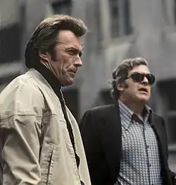 Dirty Harry (1971), written by Harry and Rita Fink, centers on a hard-edged New York City (later changed to San Francisco) police inspector named Harry Callahan who is determined to stop a psychotic killer by any means.[109] Dirty Harry has been described as being arguably Eastwood's most memorable character, and the film has been credited with inventing the "loose-cannon cop" genre.[110][111] Author Eric Lichtenfeld argues that Eastwood's role as Dirty Harry established the "first true archetype" of the action film genre.[112] His lines (quoted above) are regarded by firearms historians, such as Garry James and Richard Venola, as the force that catapulted the ownership of .44 Magnum revolvers to new heights in the United States; specifically the Smith & Wesson Model 29 carried by Harry Callahan.[113][114] Dirty Harry, released in December 1971, earned $22 million in the United States and Canada.[115] It was Siegel's highest-grossing film and the start of a series of films featuring the character Harry Callahan. Although a number of critics praised Eastwood's performance as Dirty Harry, such as Jay Cocks who described him as "giving his best performance so far, tense, tough, full of implicit identification with his character",[116] the film was also widely criticized as being fascistic.[117][118][119] After having been second for the past two years, Eastwood was voted first in Quigley's Top Ten Money Making Stars Poll in 1972 and again in 1973.[120]