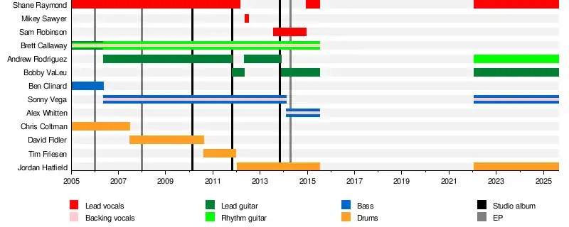 - Shane Raymond – lead vocals (2005–2012, 2014–2015, 2022–present)