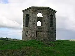 The small temple building or folly on the Kenmure Hill knoll to the northern end of Castle Semple loch is one of the few remains of the Castle Semple estate. Col. William MacDowell was responsible for the 'Temple' and also for building of Castle Semple House, which was destroyed by fire in 1935. All that remains of this 900-acre (360 ha) estate is the folly, a walled garden and a pair of gate arches.