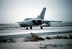 The Italian contribution included about 1,950 personnel; their operation mostly involved aircraft, and the air operation was known as Operazione Locusta. Italy deployed eight Panavia Tornado aircraft, which conducted sorties over the 42 days of war, and a cell of RF-104G Starfighter tactical reconnaissance aircraft,[24] which operated from Turkey to monitor the coalition's flank. Six F-104s were stationed in Turkey. 4 ships were sent to the gulf.[15] The Italian commander of the operation was Mario Arpino.[25]