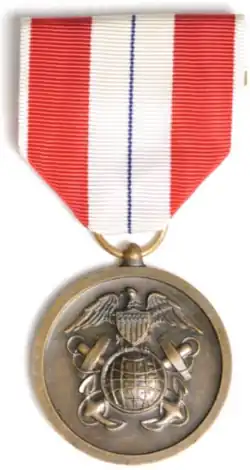 The Coast and Geodetic Survey Meritorious Service Medal was awarded to any member of the U.S. Coast and Geodetic Survey who rendered service of a meritorious character in the line of duty under the jurisdiction of the United States Secretary of Commerce between 8 September 1939 and 28 April 1952, but not of such an outstanding character as to warrant an award of the Coast and Geodetic Survey Distinguished Service Medal. Any commissioned officer of the United States Coast and Geodetic Survey Corps and any ship's officer or member of the crew of any Coast and Geodetic Survey ship was eligible for the Coast and Geodetic Survey Meritorious Service Medal.[1][2] Coast and Geodetic Survey personnel were not eligible for the medal for service they performed during periods in which they were under other jurisdiction, such as that of the United States Department of War or the United States Department of the Navy.[1]