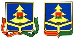 Shield | Azure, on a three-tiered spruce Or an inescutcheon of Bryansk and in base a pall also Or |