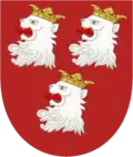 From a strictly heraldic point of view the charges on the arms are not lions but heraldic leopards. The heraldic leopard differs from the real-life leopard (Panthera pardus). It does not have any spots and often has a mane. Therefore, in heraldry, the leopard is generally similar, and is often referred to as a lion (Panthera leo). The reason for this lies in the fact that in the Middle Ages leopards were thought to be a crossbreed between a lion and a pard.[17]