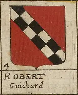Coat of arms attributed to Robert Guiscard by Jean Boisseau: this version of the coat of arms, which is very similar to the one described by Favyn, has, however, black in the bend chequy instead of blue
