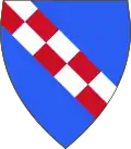 Azure, with bend chequy of argent and gules, of two rows[5]