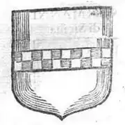 French: de gueules a la bande eschiquetee d'argent, et d'azur de deux traicts[18]