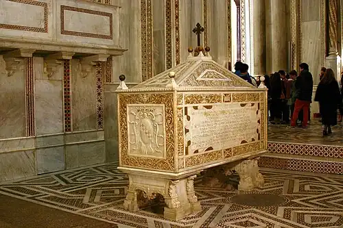 There are several examples of the use of the cross pattée, one of them being the sarcophagus, dating from the 3rd century, which, later, was used for the burial of Roger I. On the side gables of the lid, where heads of Gorgons originally appeared, crosses pattées were carved.