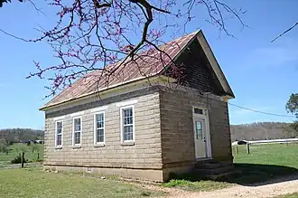 The Coats School is a historic one-room schoolhouse in rural Benton County, Arkansas. It is located near the end of Coats Road (County Road 391), near Spavinaw Creek, south of Maysville. It is built of ashlar cut stone, with rusticated stone at the corners. It has a gable roof of tin, with a central chimney. Built c. 1905, it is a rare example of high-quality stone work in a vernacular building of modest proportions.[2]