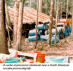 In 1991, the United States Department of Justice released a report detailing the typical process in which leaves from coca plants were ultimately converted into cocaine hydrochloride by Latin American drug cartels:[43]