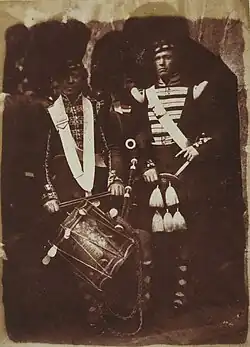 In 1897, during an attack by the Gordon Highlanders on the Dargai Heights, which were held by Afridi tribesmen during the Tirah campaign, Piper George Findlater won the Victoria Cross for continuing to play a regimental march while wounded in both feet. The official statement did not give the name of the tune he played; some accounts state that it was "Haughs of Cromdale" which was the Regimental Charge-tune, others claim it was "Cock of the North".[5] Findlater's own account says that he did not hear an order to play "Cock of the North", and played "Cromdale" on his own initiative.[6]